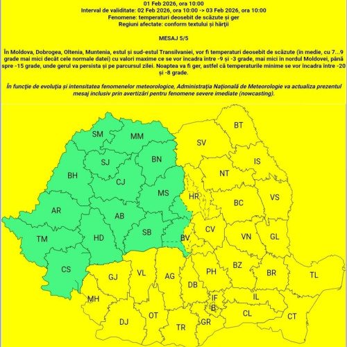 Administrația Națională de Meteorologie a anunțat emiterea mai multor coduri galbene pentru vreme rea, dintre care unul afectează și județul Gorj. Acesta va intra în vigoare mâine dimineață, la ora 10.00, și va expira pe 3 februarie, la aceeași oră.