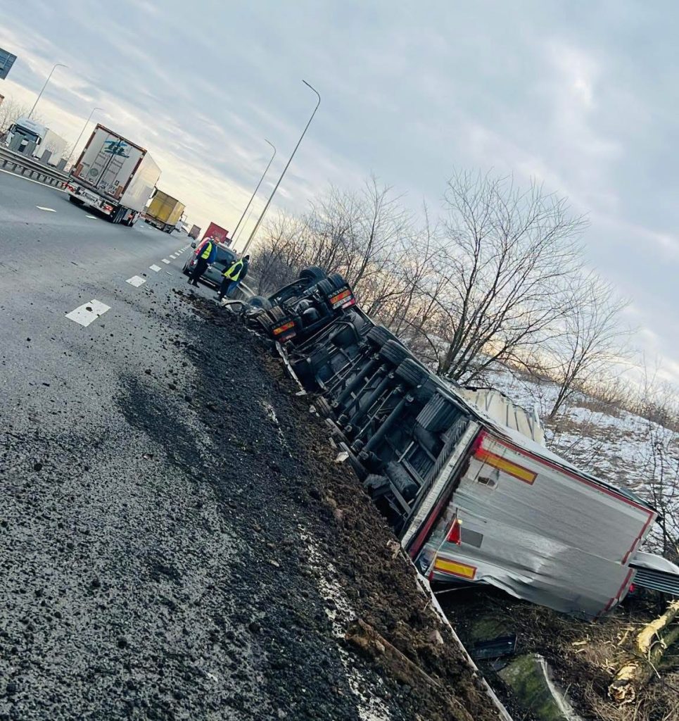 Accidentul s-a produs pe autostrada A1, în zona nodului rutier Giarmata, la kilometrul 504, pe sensul spre Lugoj. Autotrenul s-a răsturnat, blocând parțial circulația.