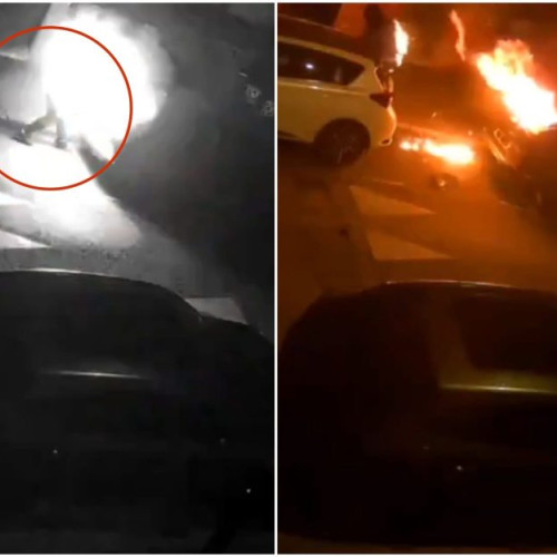 Deși alarma mașinii a început să sune, bărbatul nu s-a oprit și a aprins focul fără ezitare. Imaginile surprinse arată cum incendiul a izbucnit cu violență, iar protagonistul incidentului a fost nevoit să fugă pentru a stinge flăcările care îi cuprindeau deja îmbrăcămintea.