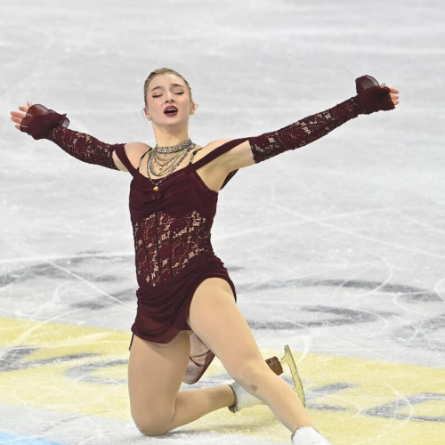 Amber Glenn a evoluat în programul scurt la feminin în timpul Campionatelor Mondiale de Patinaj Artistic ISU 2026, care...